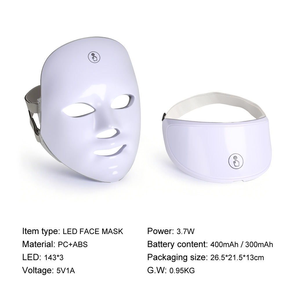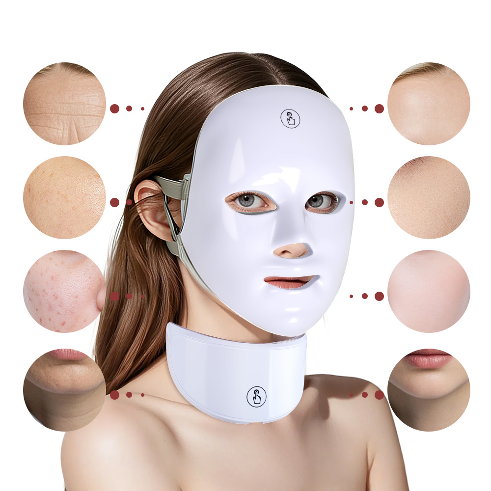 • Face Mask Light 7 Colors Face and Neck Light Facial Skin Care Anti Aging Skin Tightening Wrinkles Toning Mask