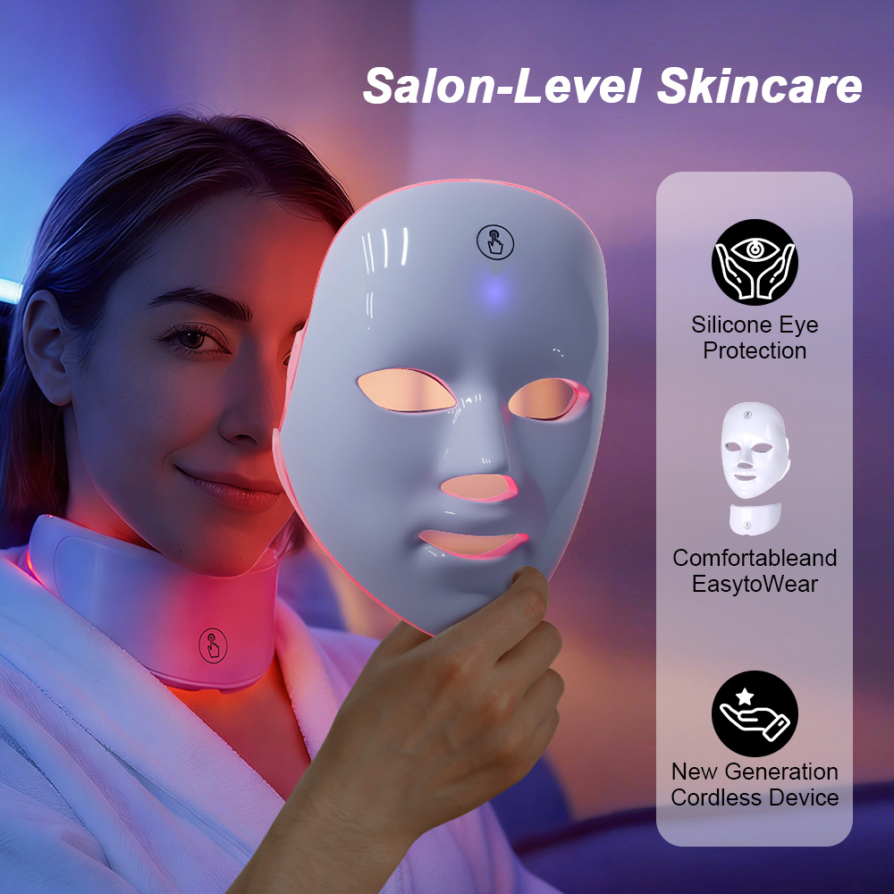 Bring professional skincare treatments to your home with the 7 Colors LED Face and Neck Mask. Designed for anti-aging, wrinkle reduction, skin tightening, and skin rejuvenation, this advanced light therapy device covers both your face and neck for complete beauty care.